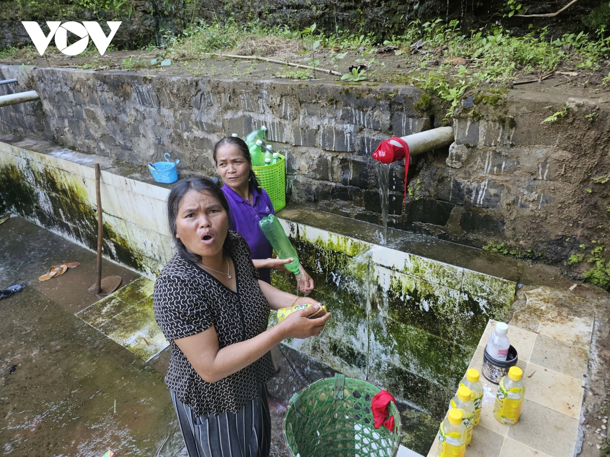 Bà con Ia Nueng đi lấy nước giọt trong làng