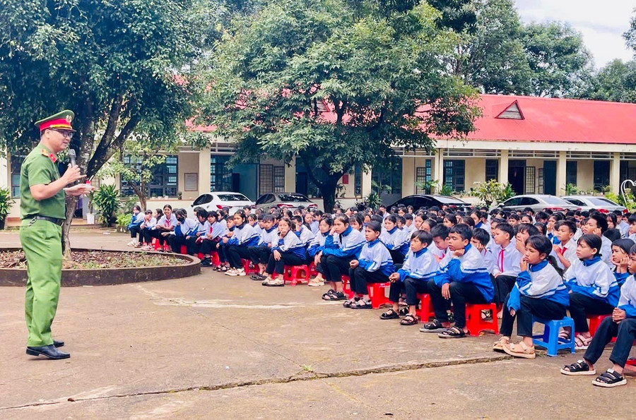 Công an xã Ia Phí tổ chức tuyên truyền pháp luật cho học sinh. Ảnh: L.N