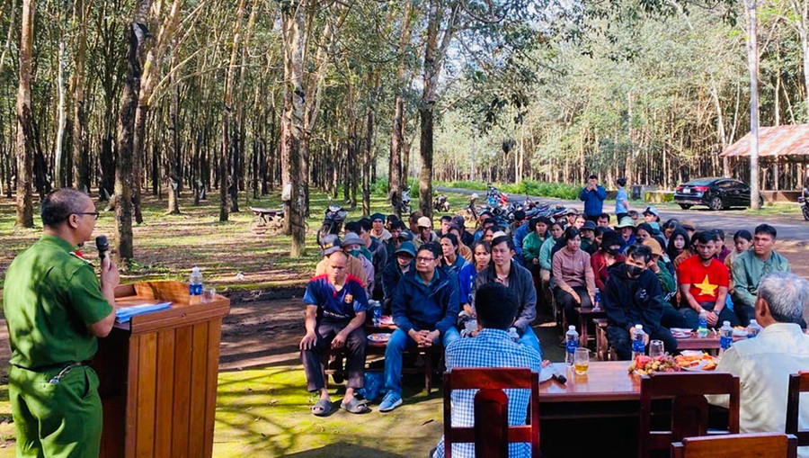 Công an xã Ia Phí đã tổ chức tuyên truyền pháp luật cho công nhân 3 đội sản xuất của Công ty TNHH một thành viên Cao su Chư Păh. Ảnh: L.N