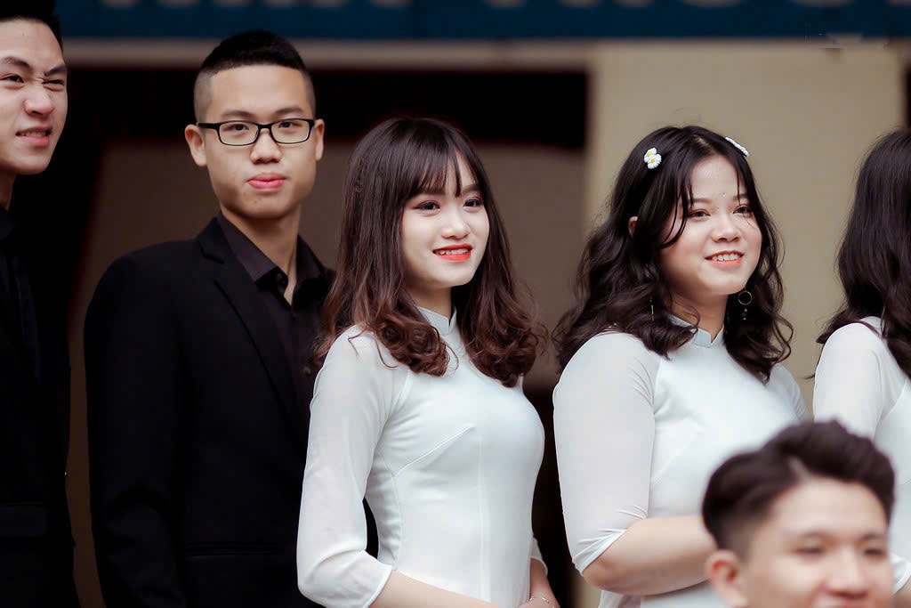 Em Hà Phương, học sinh lớp 12D3, trường THPT Phạm Hồng Thái (giữa). Ảnh: NVCC