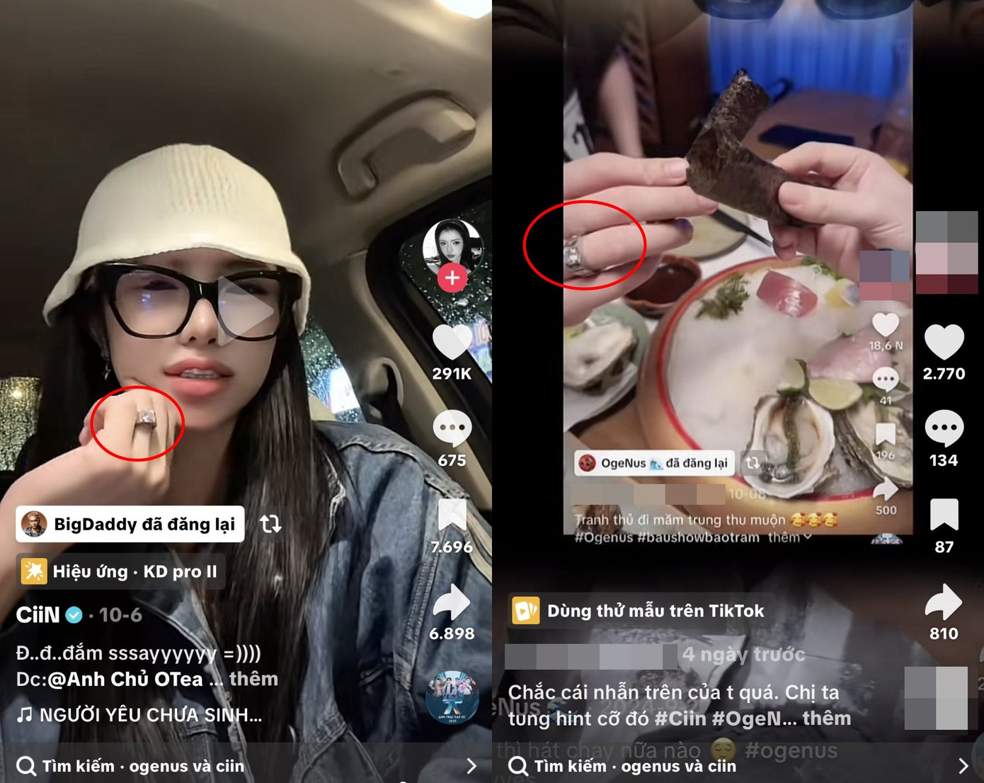 Chưa kể, OgeNus còn liên tục thả tim ảnh của CiiN trong thời gian gần đây. Nữ TikToker cũng quay video cùng ca khúc Người Yêu Chưa Sinh Ra mà OgeNus diễn trong Anh Trai "Say Hi" mùa 2, và được BigDaddy - "sư phụ" của nam rapper đăng lại.