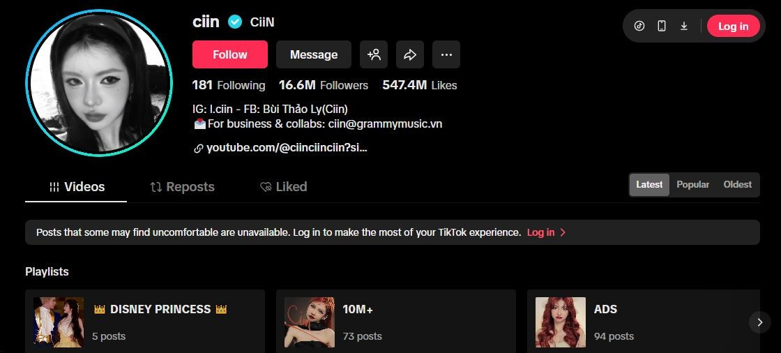 CiiN sở hữu hơn 16,6 triệu lượt theo dõi trên TikTok.