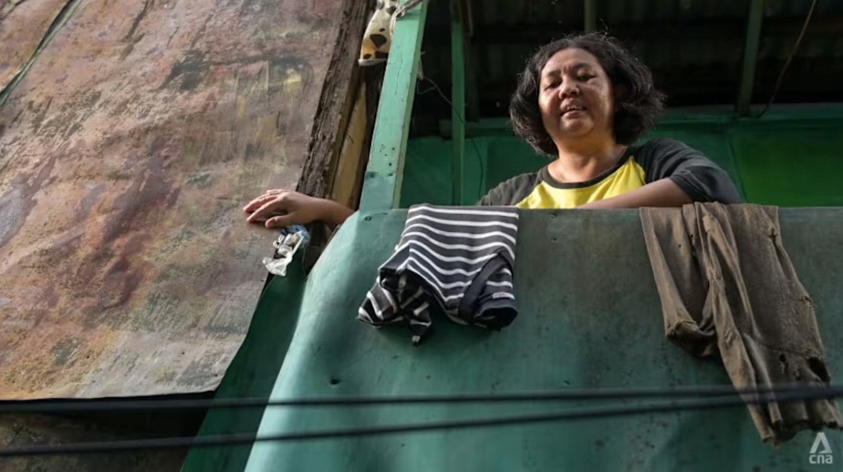 Cô Fitriyenni ở ngôi nhà lợp tôn của mình. Ảnh: CNA