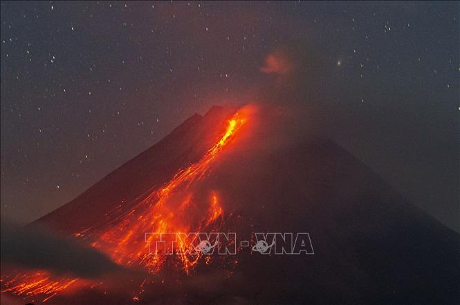 Núi lửa Merapi ở Trung Java, Indonesia phun trào ngày 5/8/2024. Ảnh tư liệu: THX/TTXVN