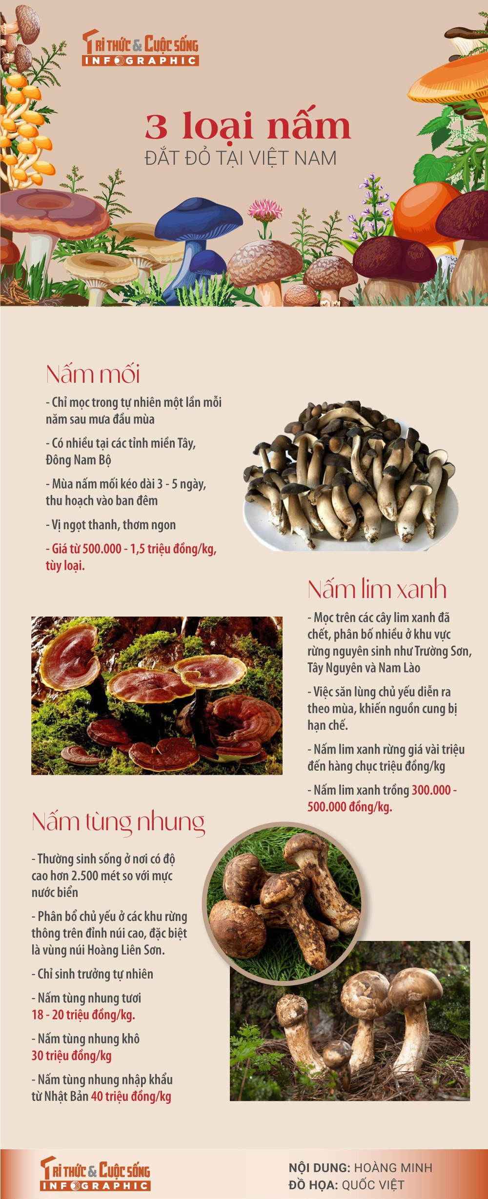 [INFOGRAPHIC] 3 loại nấm đắt đỏ tại Việt Nam