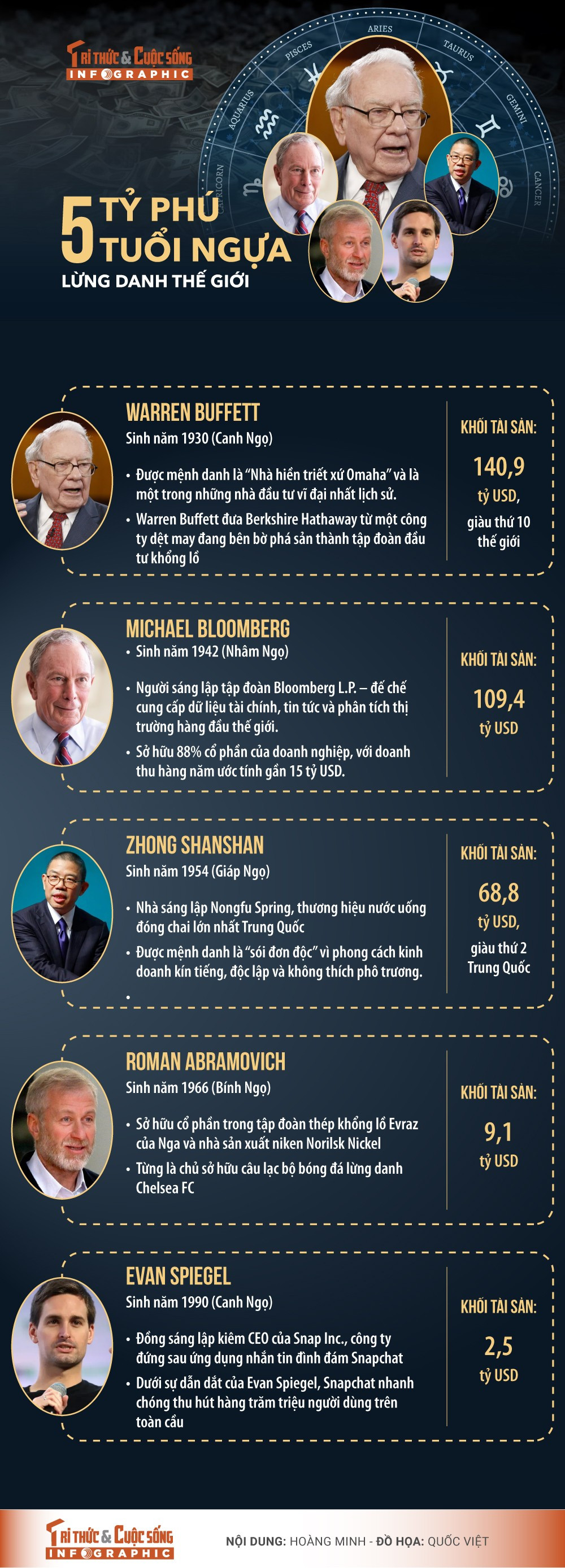 [INFOGRAPHIC] 5 tỷ phú tuổi ngựa lừng danh thế giới