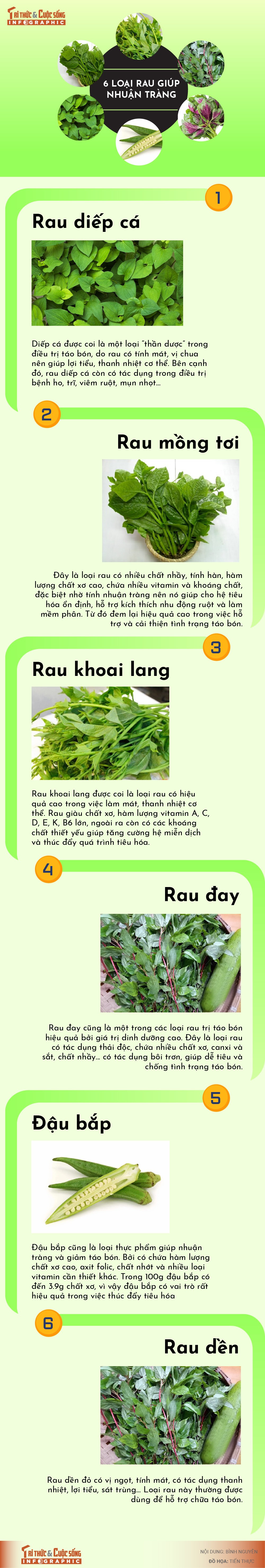[INFOGRAPHIC] 6 loại rau giúp nhuận tràng