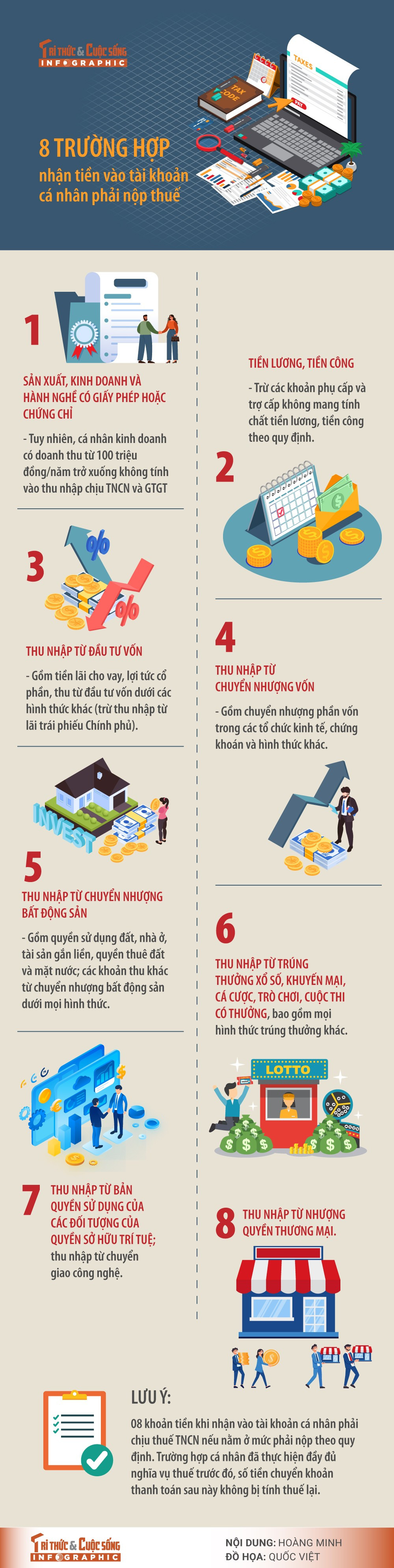 [INFOGRAPHIC] 8 trường hợp nhận tiền vào tài khoản cá nhân phải nộp thuế