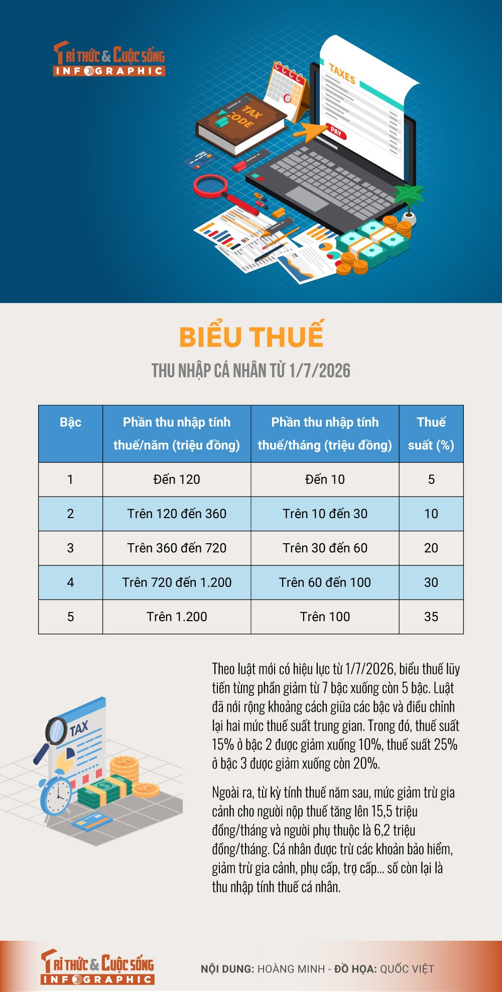 [INFOGRAPHIC] Biểu thuế thu nhập cá nhân từ 1/7/2026