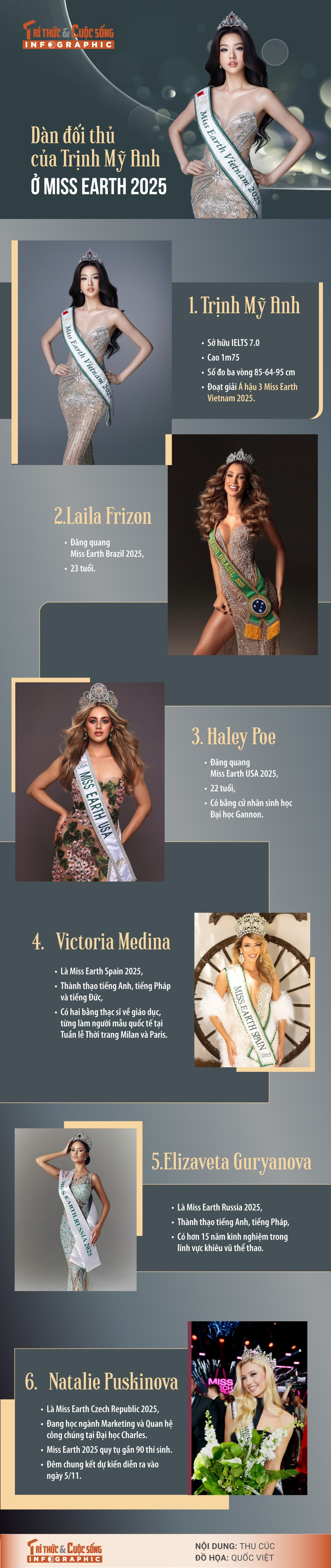 [INFOGRAPHIC] Dàn đối thủ của Trịnh Mỹ Anh ở Miss Earth 2025