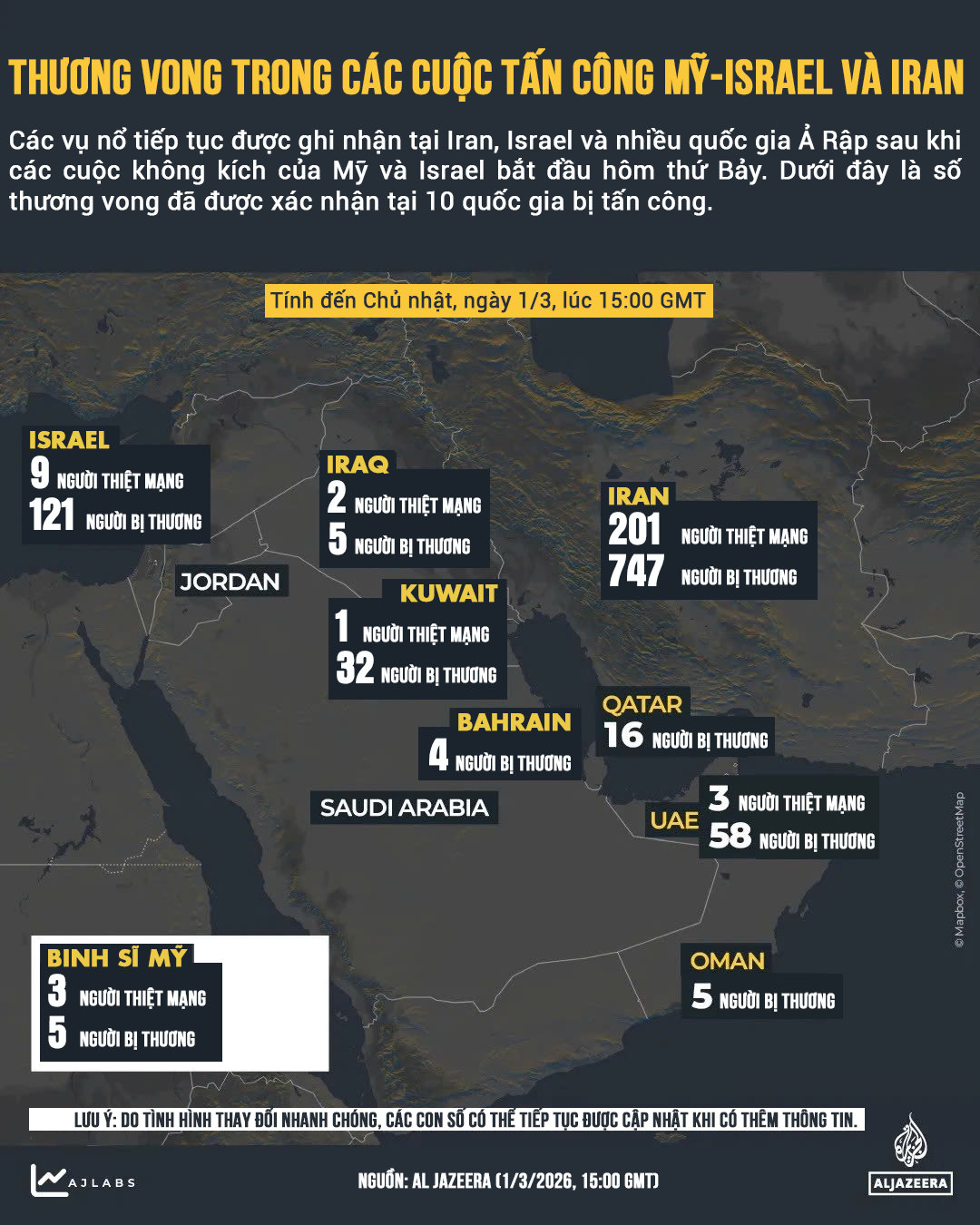 Infographic: Mỹ - Israel tấn công Iran, thương vong rải khắp Trung Đông