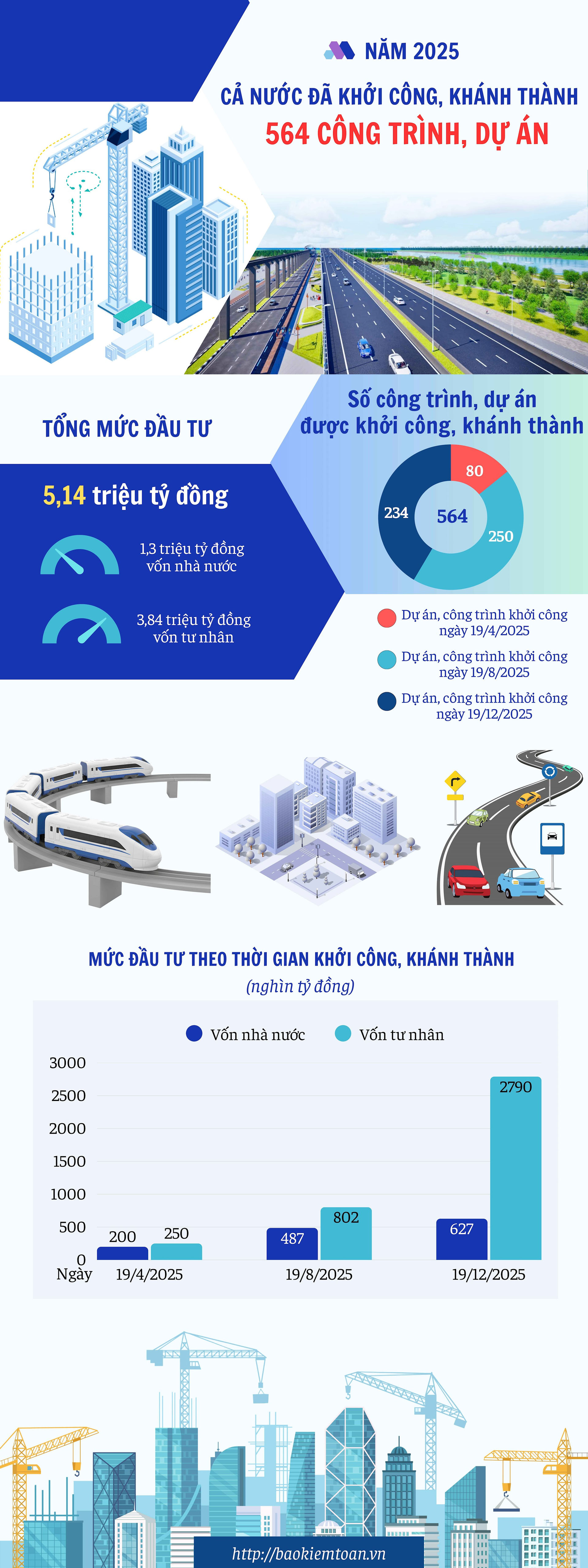 Infographic - Năm 2025, cả nước đã khởi công, khánh thành 564 công trình, dự án