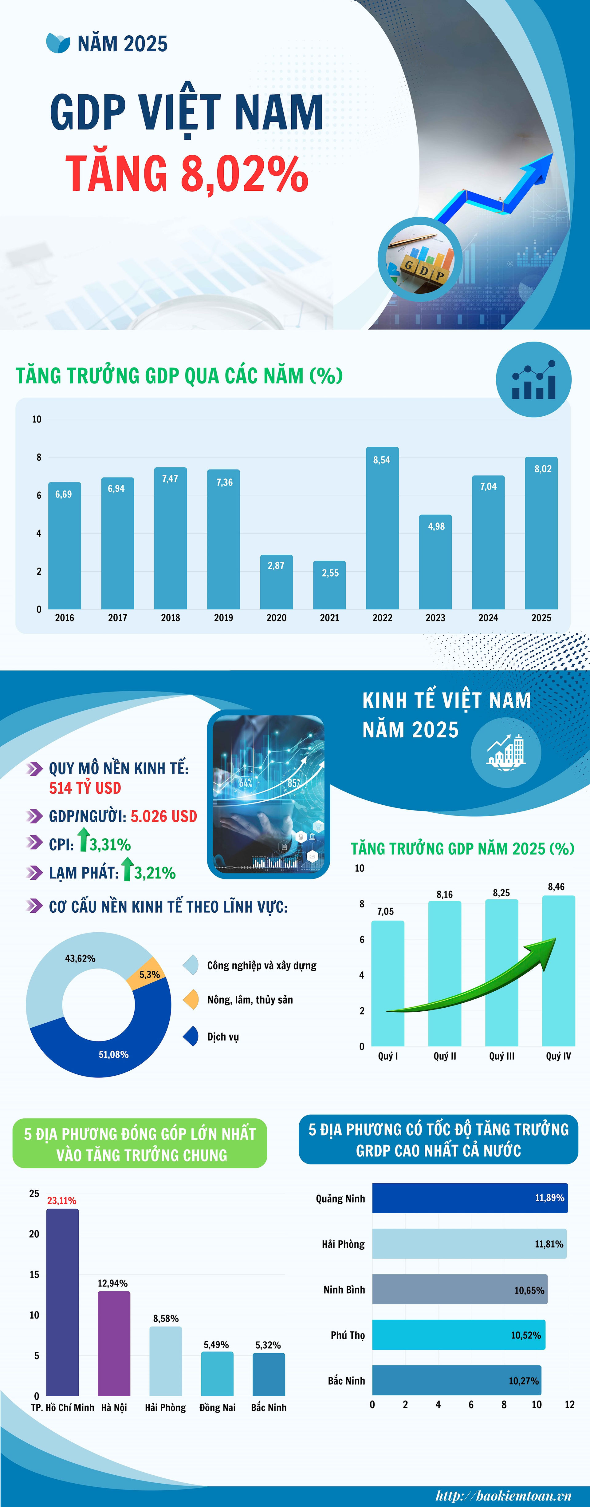 Infographic - Năm 2025, GDP Việt Nam tăng 8,02%