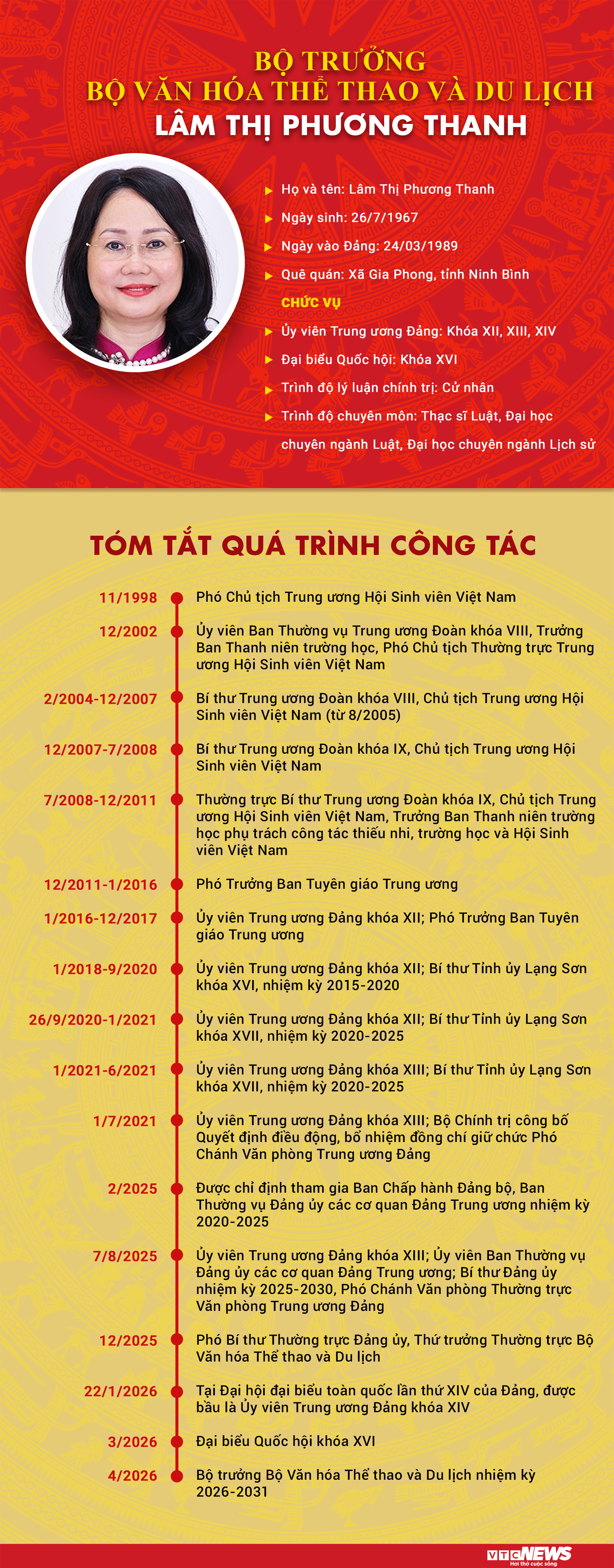 Infographic: Sự nghiệp Bộ trưởng Bộ VH-TT&DL Lâm Thị Phương Thanh