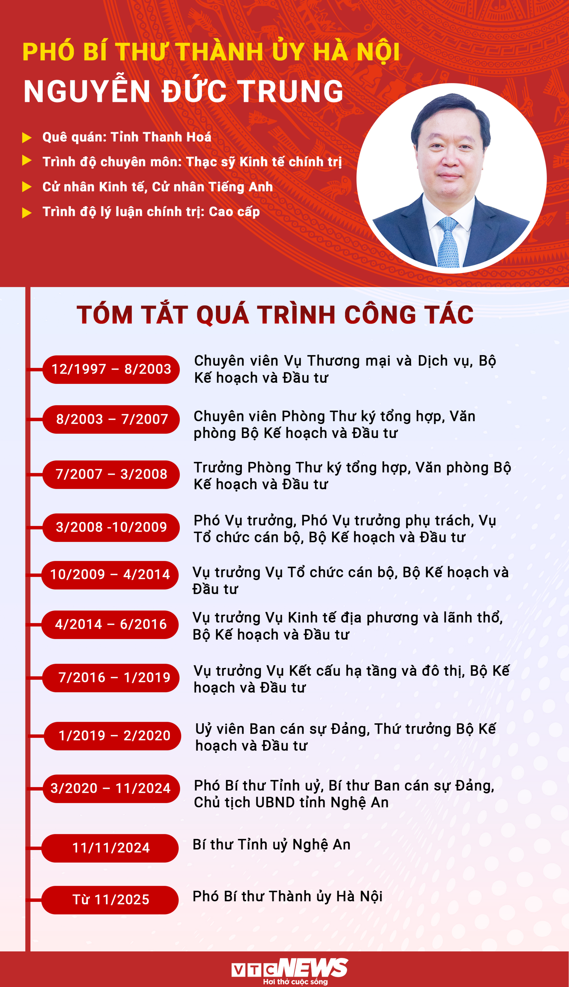 Infographic: Sự nghiệp Phó Bí thư Thành ủy Hà Nội Nguyễn Đức Trung
