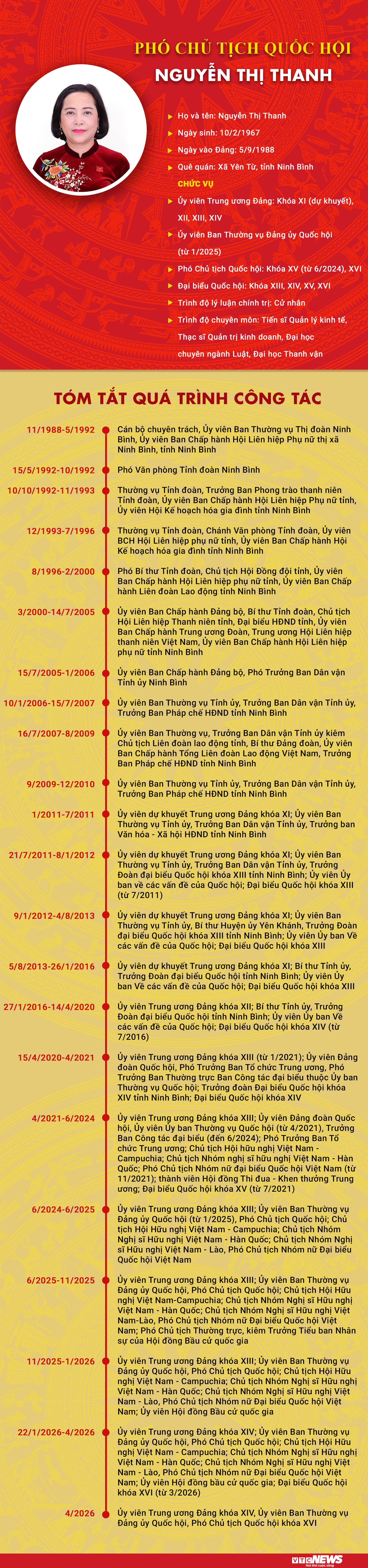 Infographic: Sự nghiệp Phó Chủ tịch Quốc hội khóa XVI Nguyễn Thị Thanh