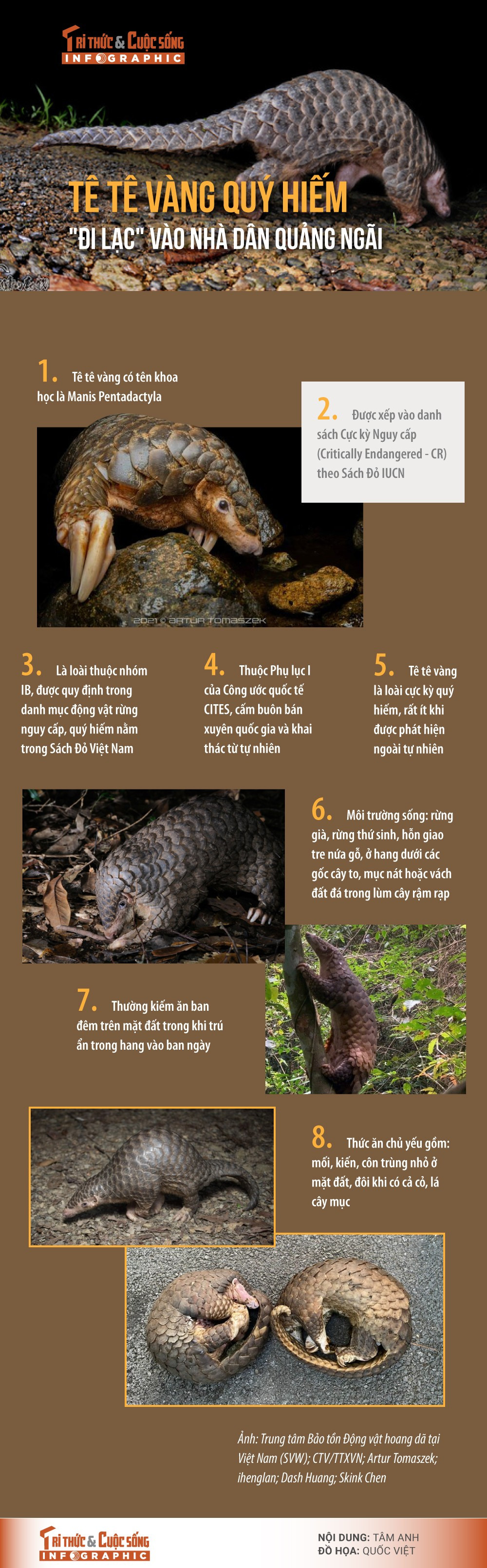 [INFOGRAPHIC] Tê tê vàng quý hiếm 'đi lạc' vào nhà dân Quảng Ngãi
