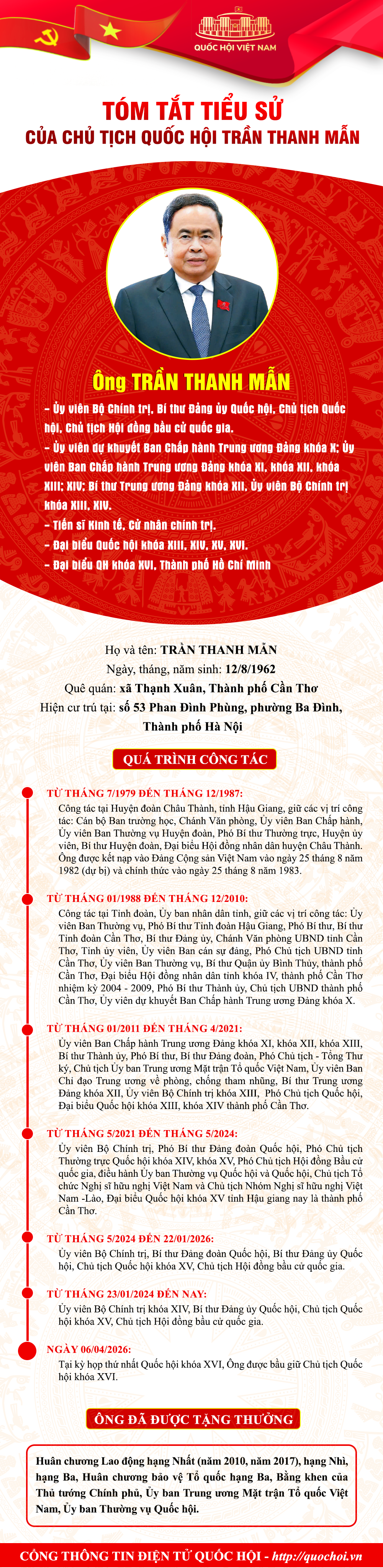(Infographic) Tóm tắt tiểu sử Chủ tịch Quốc hội khóa XVI Trần Thanh Mẫn