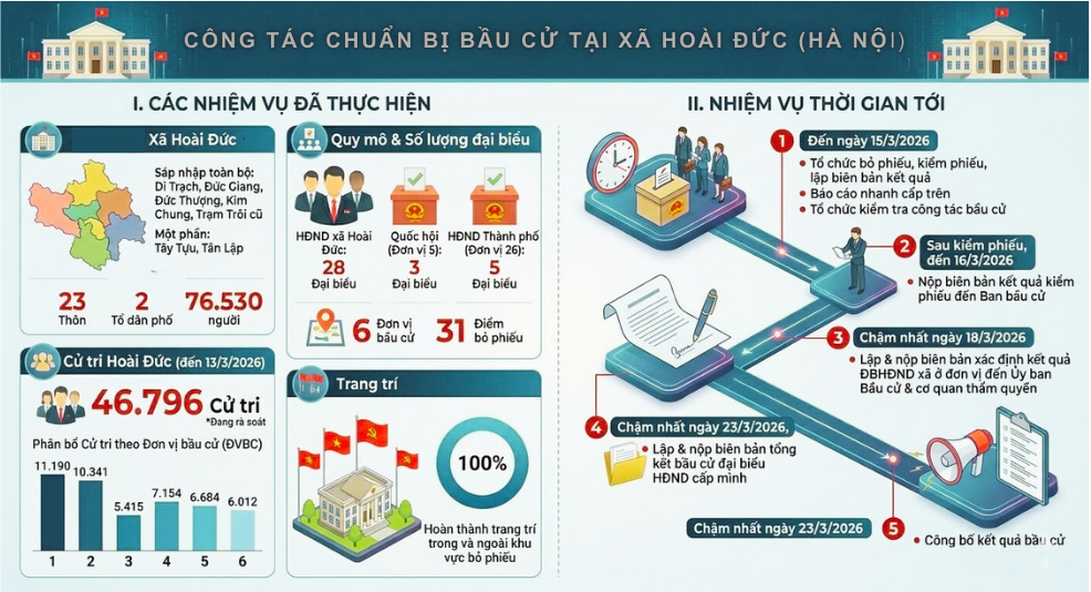 Infographic tổng quan công tác chuẩn bị bầu cử tại xã Hoài Đức