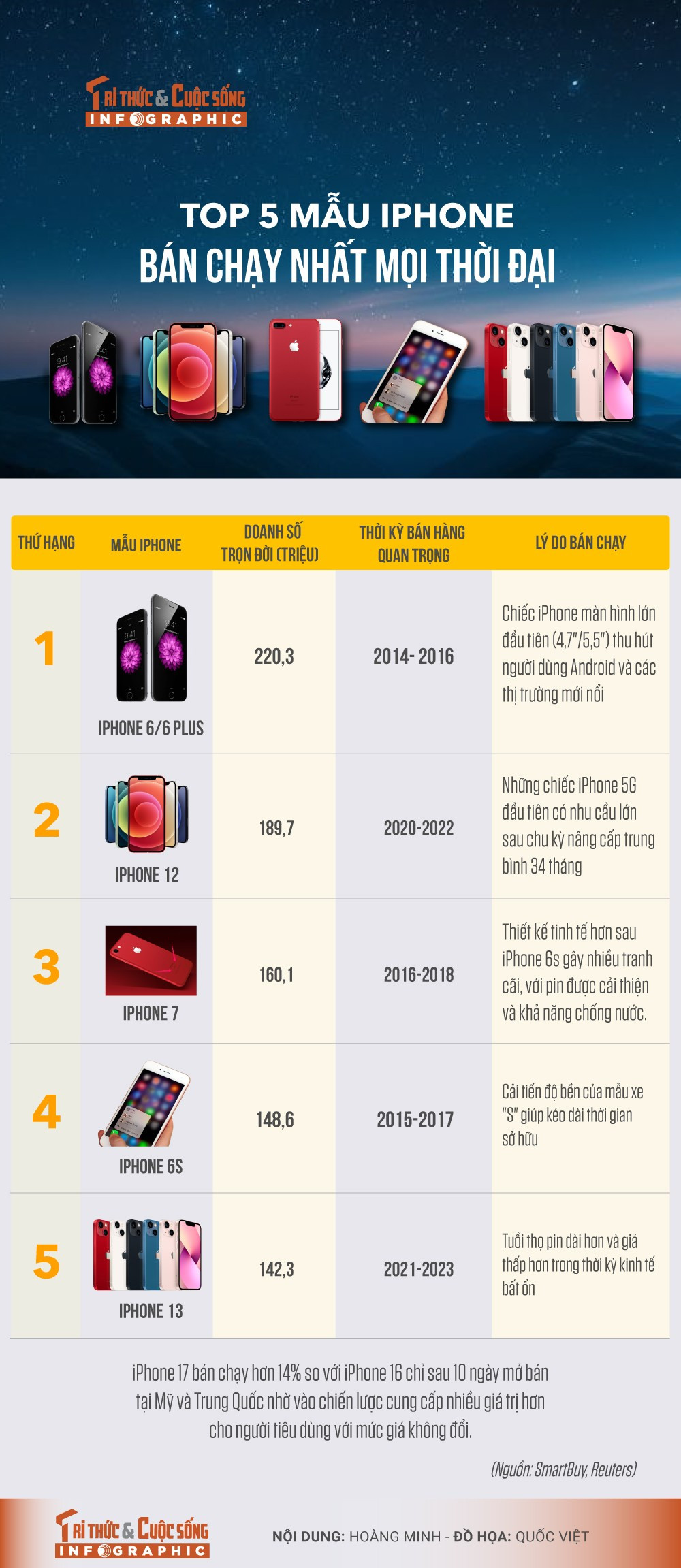 [INFOGRAPHIC] Top 5 mẫu iPhone bán chạy nhất mọi thời đại
