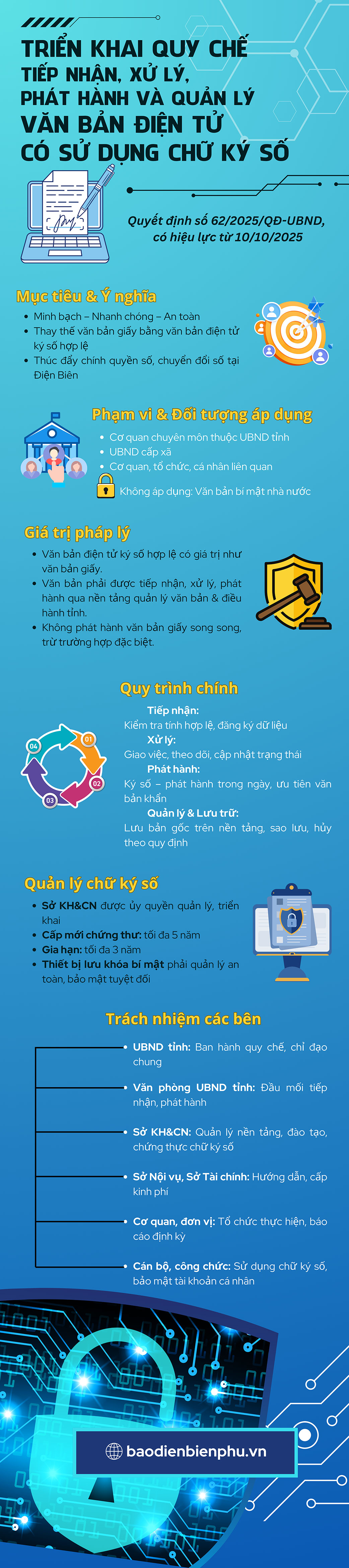 (Nguồn: Quyết định số 62/2025/QĐ-UBND ngày 30/9/2025 của UBND tỉnh về Quy chế tiếp nhận, xử lý, phát hành và quản lý văn bản điện tử có sử dụng chữ ký số của các cơ quan Nhà nước trên địa bàn tỉnh Điện Biên).