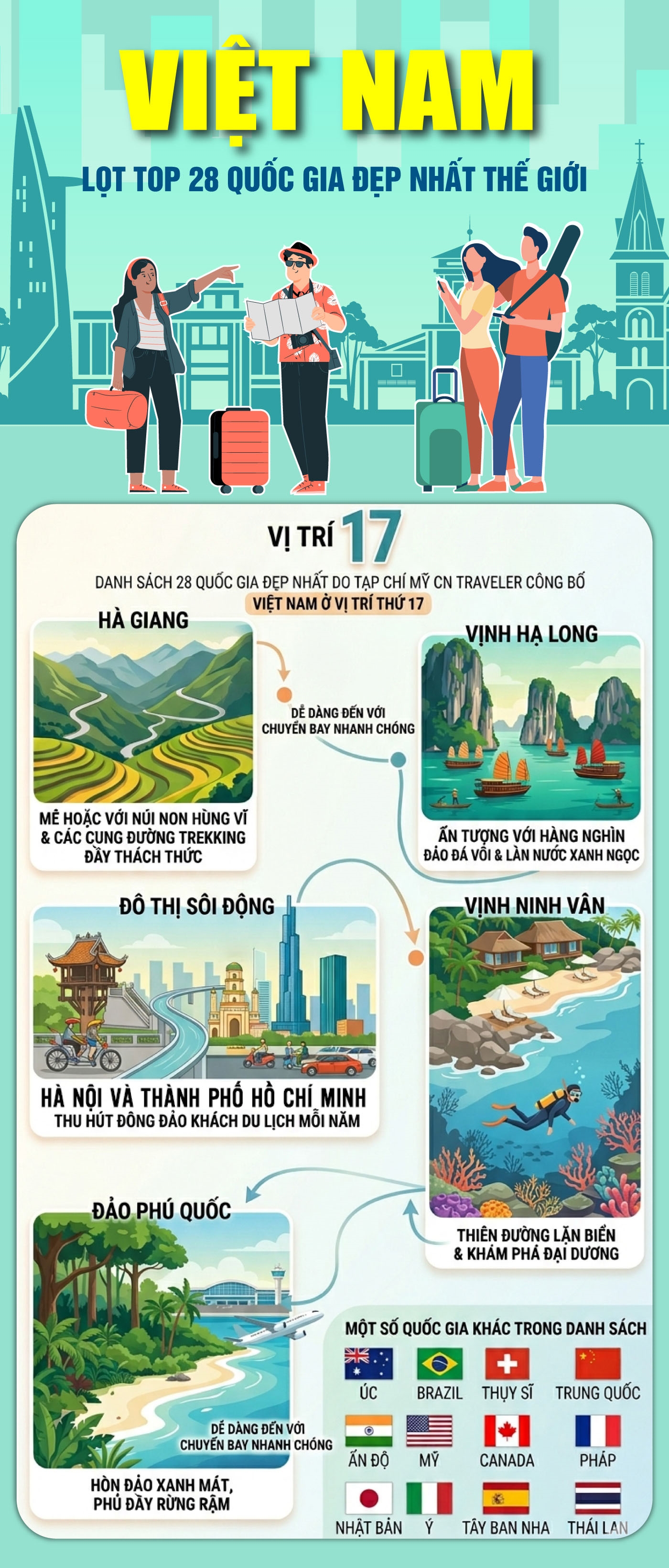 (Infographic) Việt Nam lọt top 28 quốc gia đẹp nhất thế giới
