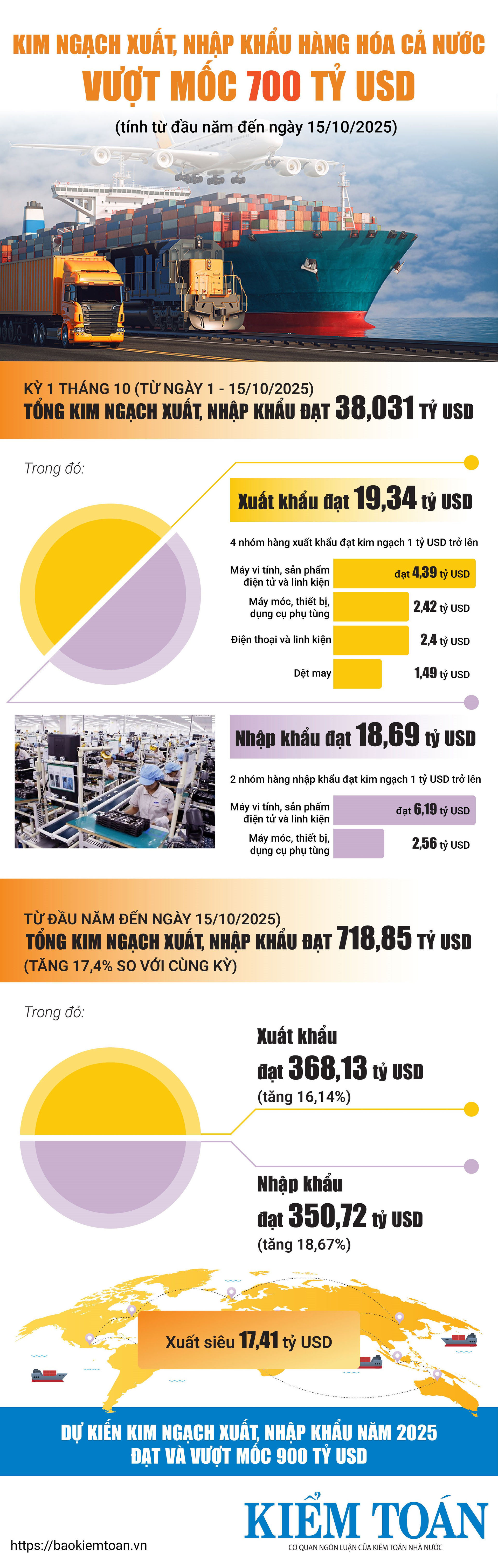 Infographics: Xuất nhập khẩu bứt phá trên 700 tỷ USD, hướng tới kỷ lục mới
