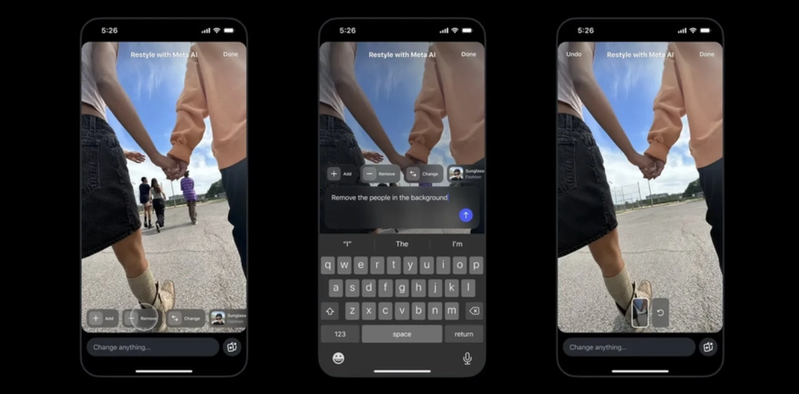 Việc sử dụng Restyle khá đơn giản. Sau khi chọn ảnh hoặc video muốn đăng làm Story, người dùng chỉ cần nhấn vào nút Restyle ở góc trên bên phải giao diện chỉnh sửa. Với video, bạn có thể chọn các mẫu phong cách và hiệu ứng được cài sẵn để áp dụng trước khi đăng. Còn với ảnh, ngoài những hiệu ứng preset, người dùng có thể nhập lệnh hướng dẫn (prompt) để thêm, xóa hoặc thay đổi chi tiết theo ý tưởng riêng. Cách hoạt động này giúp bạn cá nhân hóa nội dung một cách linh hoạt, từ việc chỉnh sửa nhỏ như xóa vật thể nền cho đến thay đổi ánh sáng và tông màu toàn khung hình.