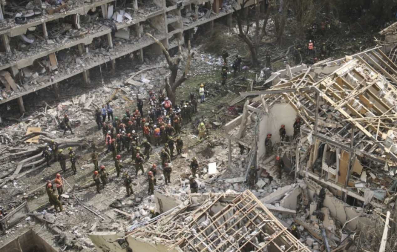 Lực lượng cứu hộ Israel nỗ lực tìm kiếm người mất tích trong các tòa nhà bị đổ nát do giao tranh. Ảnh: AP