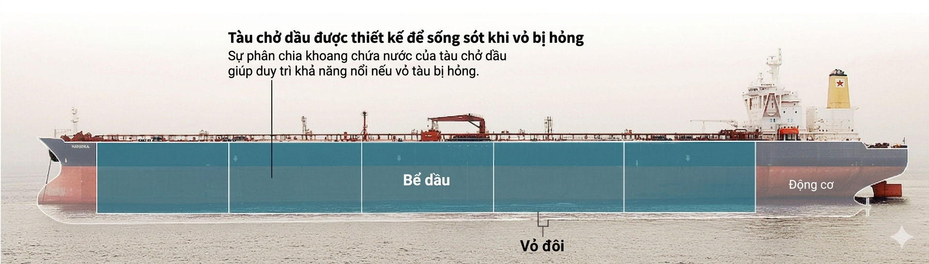 Các tàu chở dầu hiện đại, vốn có cấu trúc thân kép nhằm ngăn dầu tràn ra biển, đặc biệt khó bị đánh chìm bởi thủy lôi. Ngay cả khi lớp vỏ ngoài bị phá vỡ bởi vụ nổ, lớp vỏ trong vẫn có thể còn nguyên vẹn. Bên cạnh đó, giống như các tàu chiến và tàu hàng hiện đại, tàu dầu được thiết kế với nhiều khoang kín nước có thể đóng lại để ngăn nước tràn vào.