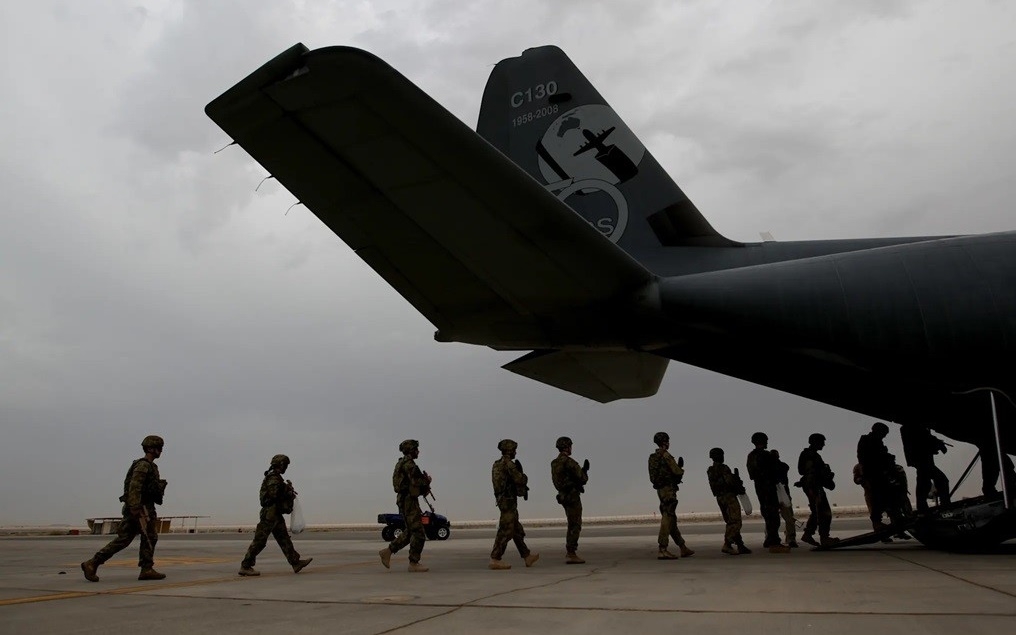 Binh lính Australia lên máy bay tại căn cứ Al Minhad ở UAE. Ảnh: Ellinghausen.