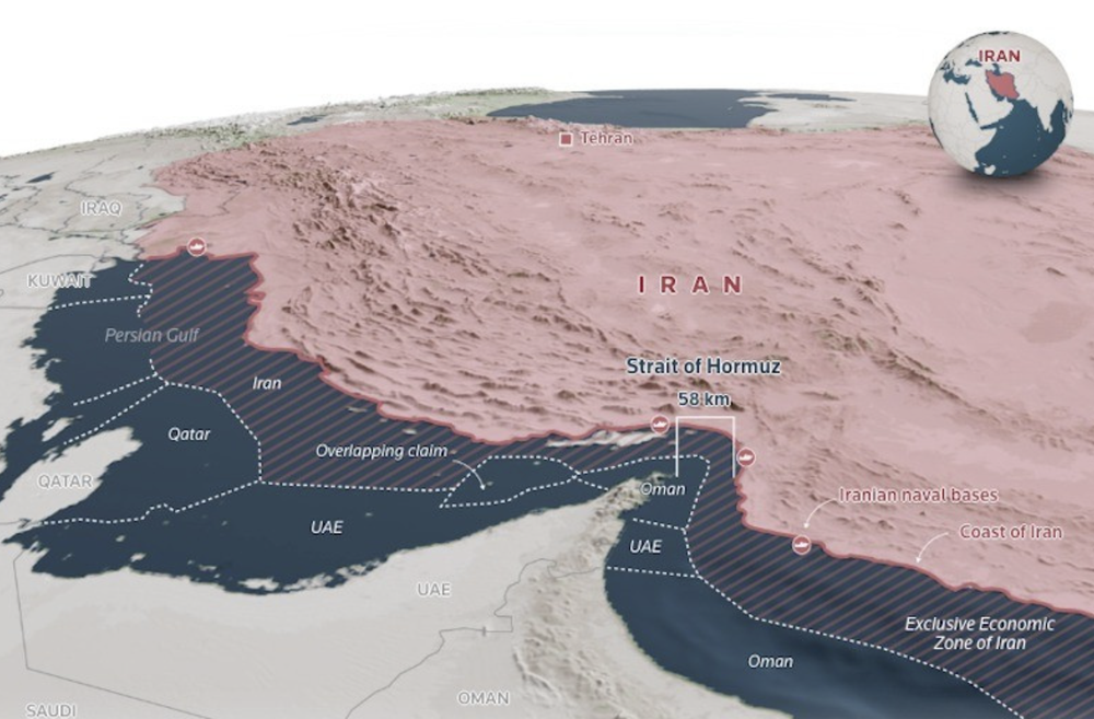 Eo biển Hormuz không chỉ là lối ra cho sản lượng dầu của Iran mà còn là điểm nghẽn yếu nếu bị phong tỏa.
