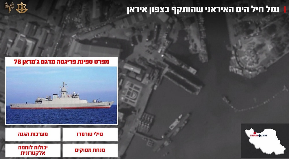 “Trong khuôn khổ cuộc tấn công, Không quân Israel đã tập kích nhiều mục tiêu trong quân cảng Iran, nơi neo đậu của hàng chục tàu chiến. Các mục tiêu bị tấn công bên trong cảng gồm có nhiều chiến hạm của Hải quân Iran như tàu tên lửa, tàu hỗ trợ và tàu tuần tra; sở chỉ huy được các lực lượng Hải quân Iran sử dụng để điều hành những hoạt động trên biển Caspian; hạ tầng phục vụ cho việc sửa chữa và bảo trì các con tàu”, IDF thông tin.