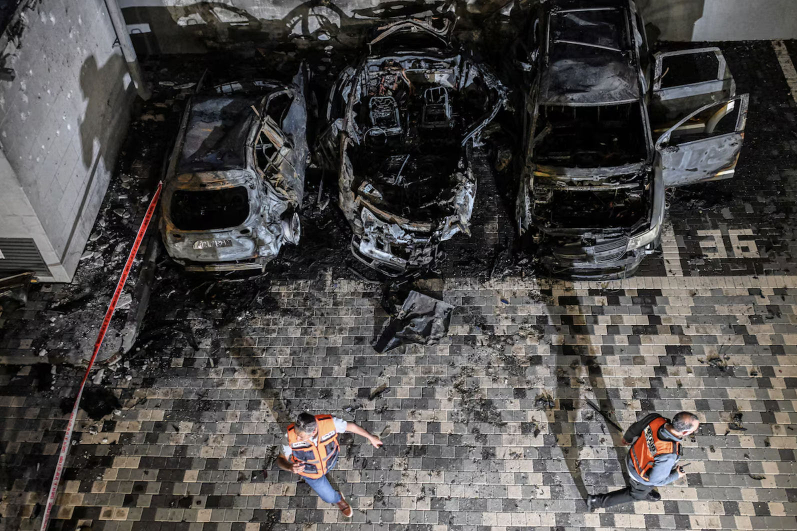 Nhân viên cứu hộ kiểm tra hiện trường sau vụ tấn công ở Nahariya, Israel. (Ảnh: Reuters)