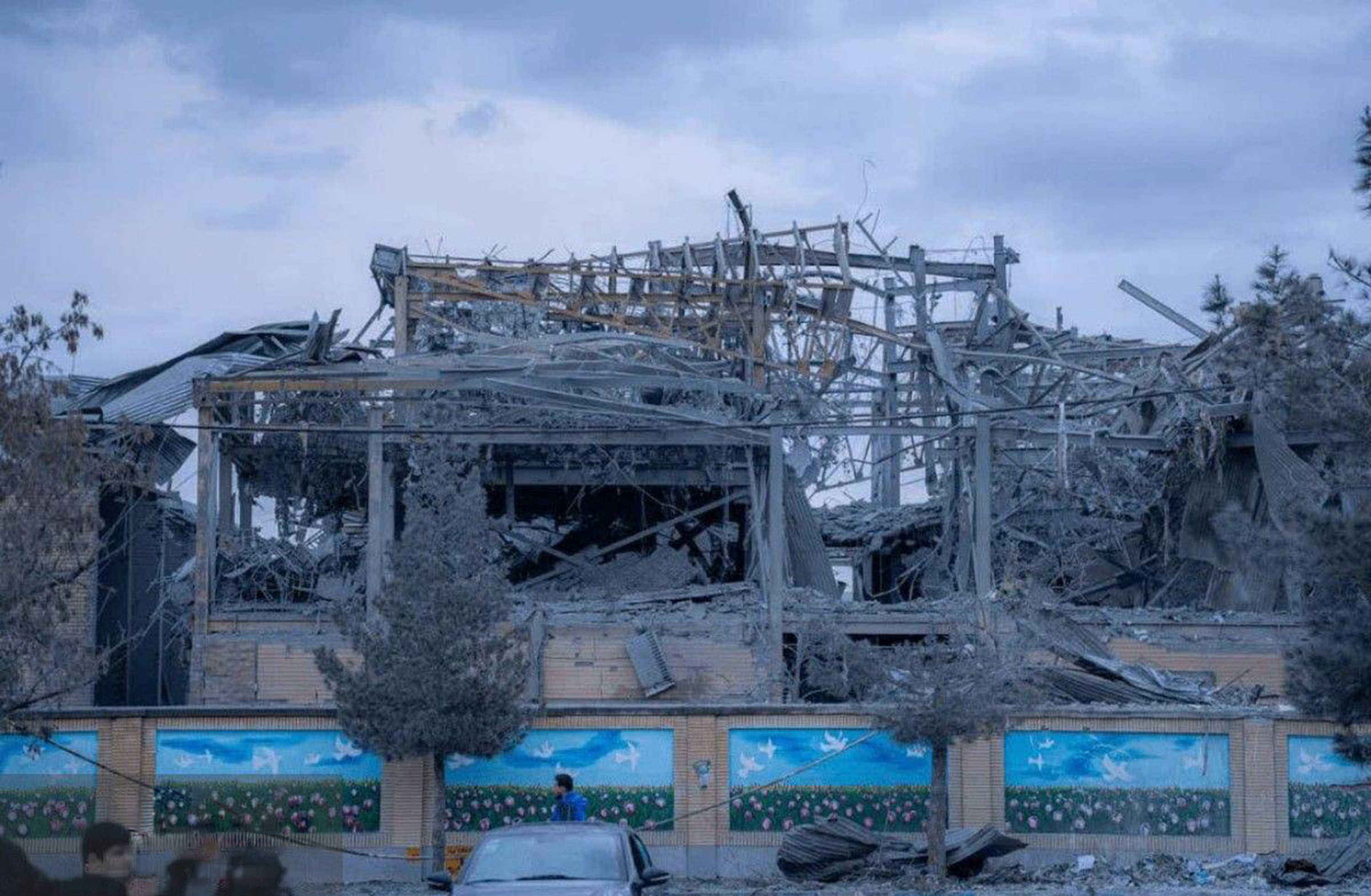 Trường Shahed Boys' School ở thành phố Khomein đã bị tấn công bằng không kích vào sáng sớm 16-3. ẢNH: WANA