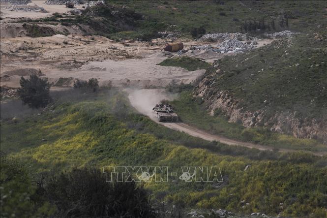 Xe quân sự Israel tiến vào miền Nam Liban ngày 13/3/2026. Ảnh: THX/TTXVN