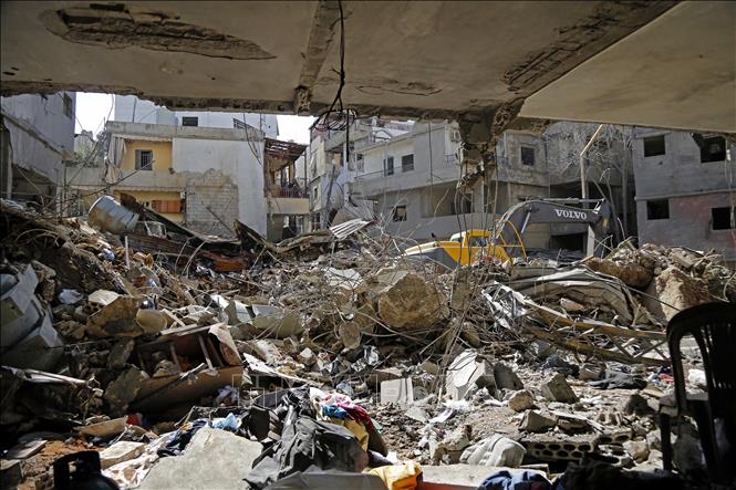 Hiện trường các cuộc không kích của Israel xuống khu vực Jnah ở Beirut, Liban, ngày 6/4/2026. Ảnh: THX/TTXVN