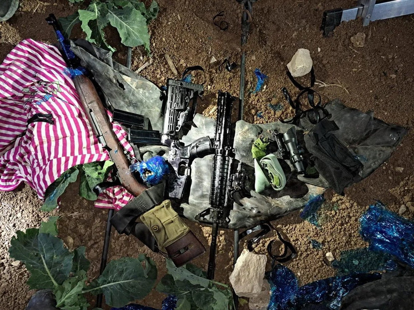Vũ khí và đạn dược bị thu giữ trong một chiến dịch phối hợp giữa Cảnh sát Israel và cơ quan an ninh Shin Bet của Lực lượng Phòng vệ Israel (IDF). (Nguồn: i24news)