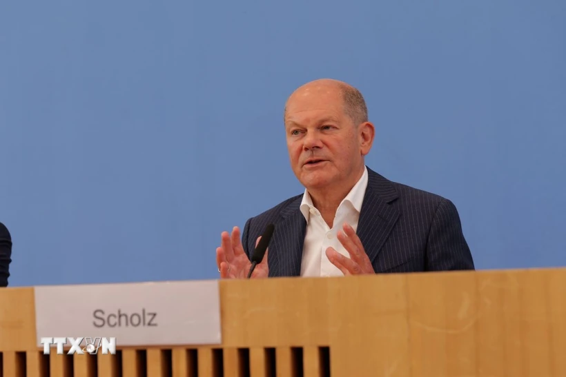 Thủ tướng Olaf Scholz khẳng định nước Đức có trách nhiệm duy trì ký ức về thảm họa diệt chủng Do Thái (Holocaust), dưới thời Đức quốc xã trong Chiến tranh Thế giới thứ hai. (Ảnh: TTXVN phát)