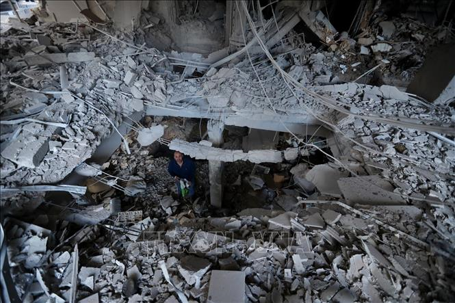 Đống đổ nát tại Beirut, Lebanon sau các cuộc không kích của Israel. Ảnh: THX/TTXVN