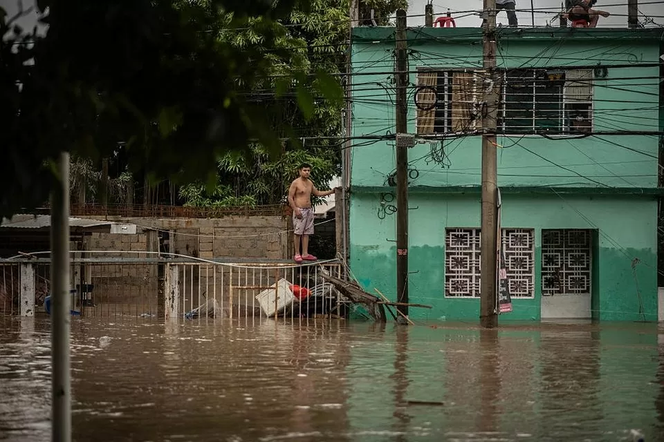 Một người đàn ông quan sát con phố ngập nước sau trận mưa lớn ngày 10/10 tại thành phố Poza Rica, bang Veracruz, Mexico. (Nguồn: The Irish Independent)