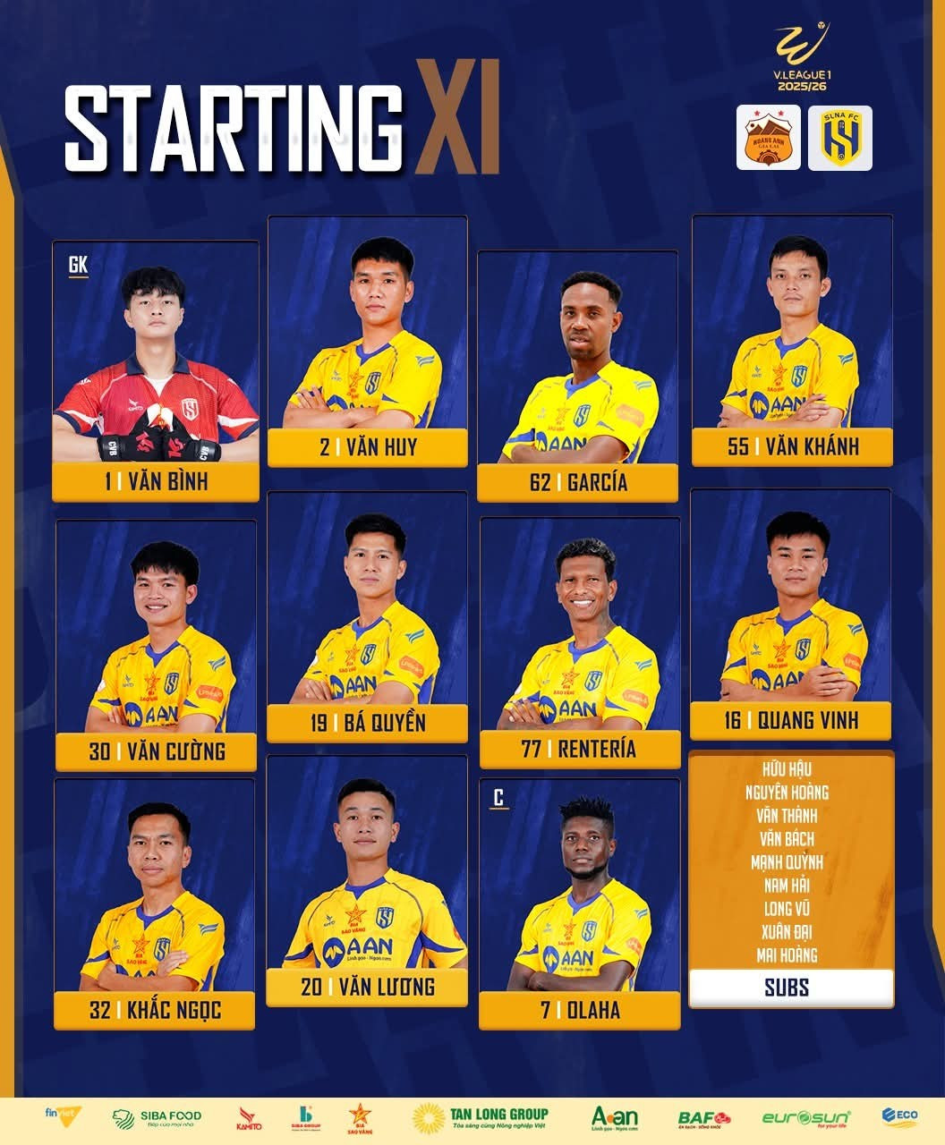 report Đội hình ra sân của SLNA
