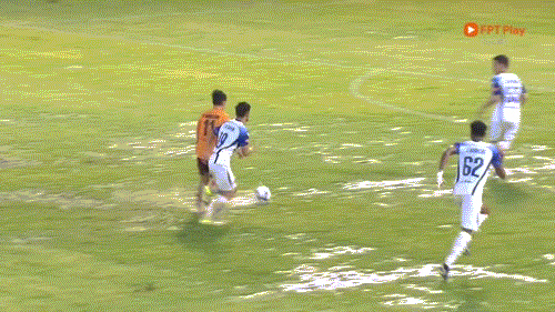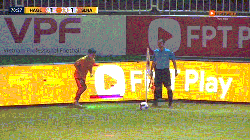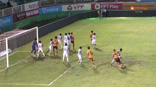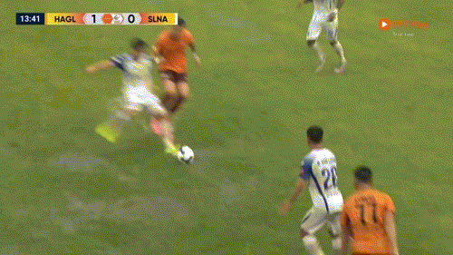 Phút 20: Như đã nói, sân trơn, các vũng nước và quả bóng nặng khiến HAGL và SLNA không thể thực hiện các đường chuyền đúng địa chỉ. Theo thống kê, tỷ lệ chuyền chính xác của hai đội lần lượt là 30% và 35%.