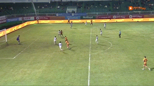 Phút 59: Từ quả phạt góc bên cánh phải, Vĩnh Nguyên tạt bóng về cột hai, Jairo đánh đầu chuyền và Quang Kiệt cúi người thực hiện quả đánh đầu tiếp theo. Tuy nhiên bóng đã bị phá ra.