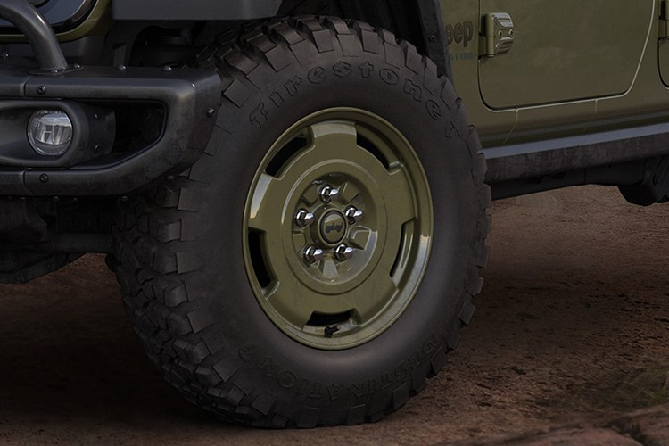 Gần đây trong danh mục xe “quân sự retro” có Jeep Wrangler Commando 392 và Wrangler Willys ’41. Riêng chiếc Gladiator ’41 2026 có nhiều điểm nổi bật. Xe sở hữu tông màu sơn ngoại thất xanh ô liu quân đội - Olive Drab, kết hợp tông màu 17 inch sơn xanh và bộ lốp địa hình mud-terrain 32 inch (LT255/75R17).