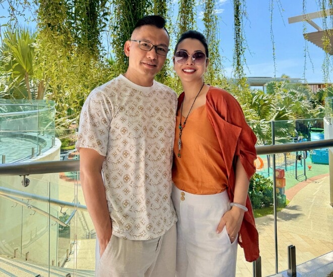 Vợ chồng Hoa hậu Jennifer Phạm du xuân đầu năm mới.