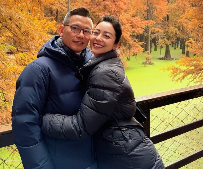 Hoa hậu Jennifer Phạm và ông xã, doanh nhân Đức Hải, gần đây đã có chuyến nghỉ dưỡng tại Trung Quốc. Trên trang cá nhân, cô chia sẻ nhiều hình ảnh kỷ niệm trong không gian mùa thu lãng mạn, kèm theo dòng trạng thái: "Thu đặt màu lên lá, còn anh đặt bình yên lên trái tim em".