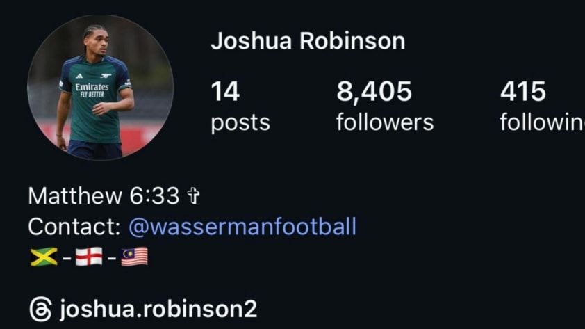 Joshua Robinson, cựu cầu thủ trẻ của học viện Arsenal, gây chú ý khi thêm ba lá cờ Jamaica, Anh và Malaysia vào phần giới thiệu trên Instagram. Động thái nhỏ nhưng giàu thông điệp này lập tức khơi dậy kỳ vọng tại Malaysia về khả năng cầu thủ trẻ có thể khoác áo Harimau Malaya trong tương lai gần.