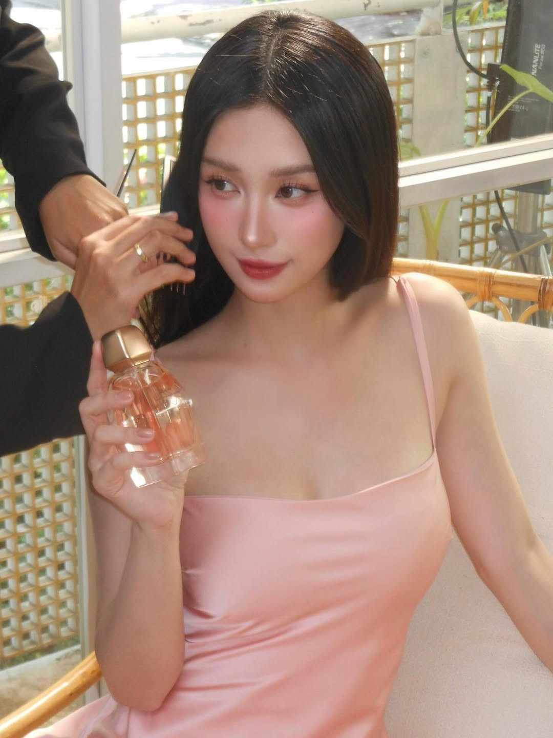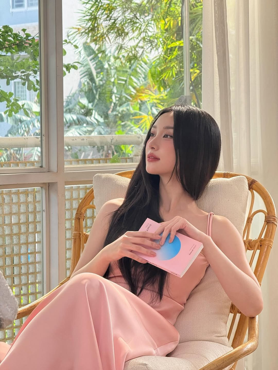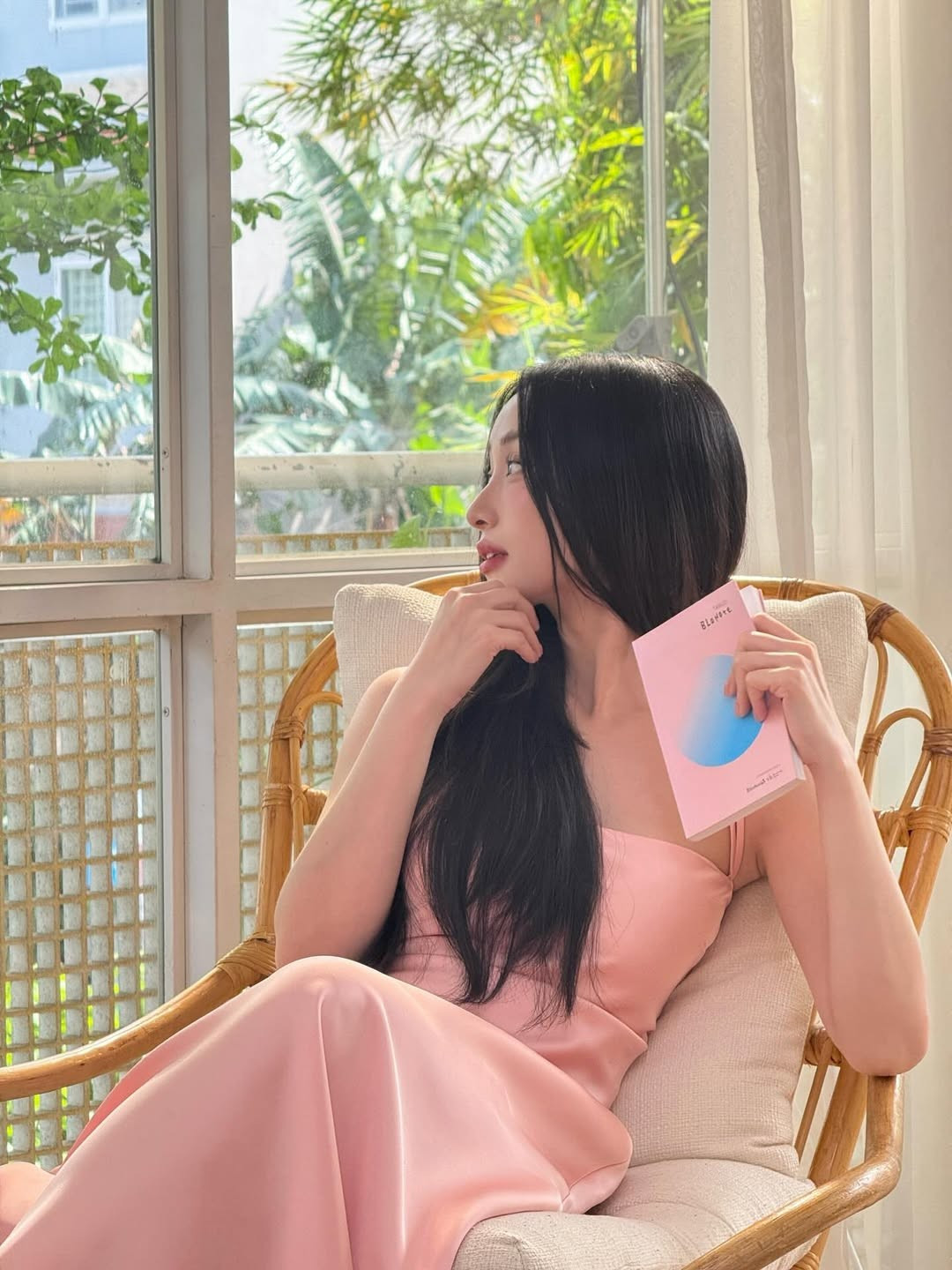 Trong loạt ảnh vừa chia sẻ, Jun Vũ xuất hiện trong một không gian tràn ngập ánh sáng tự nhiên và cây cỏ. Cô diện một chiếc váy lụa tông hồng pastel ngọt ngào, chất liệu satin bóng bẩy ôm sát những đường cong cơ thể một cách tinh tế. (Ảnh: IGNV)