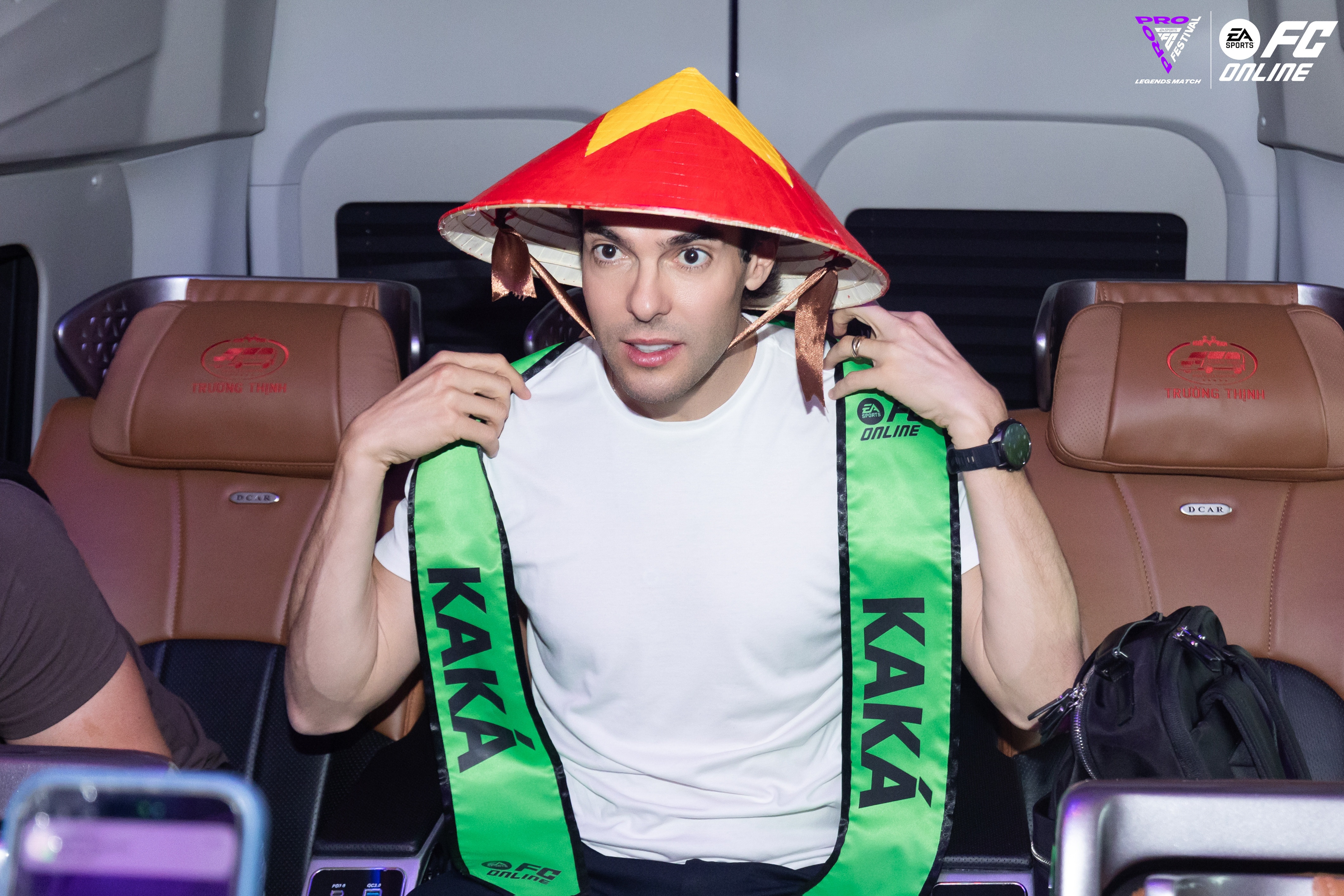 Kaka xuất hiện với nón lá khi có mặt tại TP.HCM. Ảnh: FC Online.